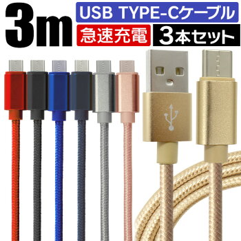 【送料無料】【3本セット】【3m】充電ケーブル type-c 3m Type-C USB 充電器 高速充電 android アンドロイド データ転送 速達 iPad Pro / Xperia XZs / Xperia XZ / Xperia X compact / Nexus 6P / Nexus 5X 等 USB 充電ケーブル タイプC 耐久 送料無料 R5P